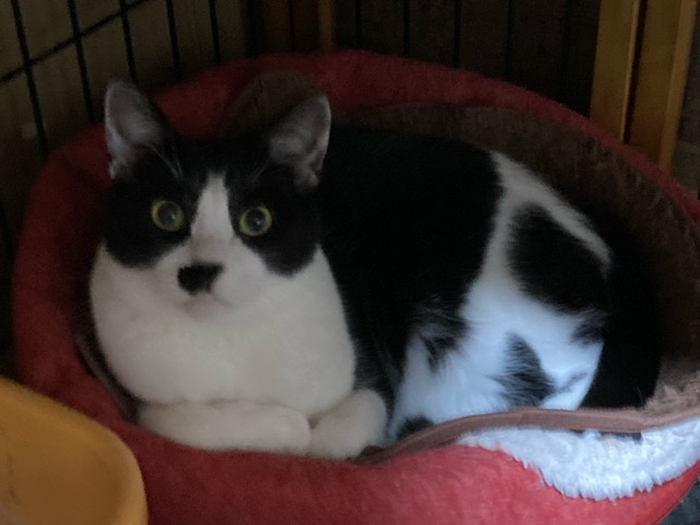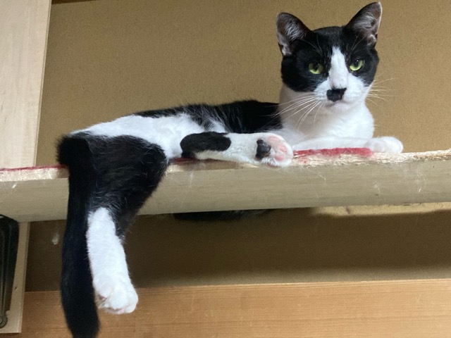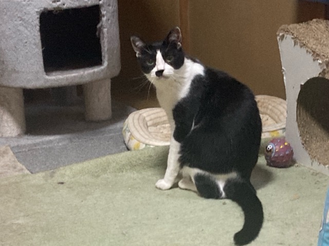猫じゃらしオモチャ大好き、黒白ハチワレの美男子なだんくん。