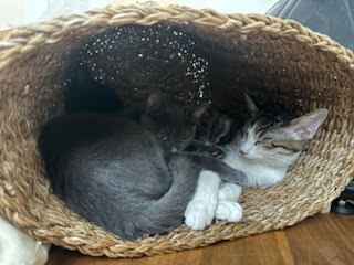 人慣れ訓練中で臆病ですが元々の性格は甘えん坊でたくさん甘えてくれます。警戒心は強いけれど好奇心旺盛で遊び好き。他の猫にも甘え上手。