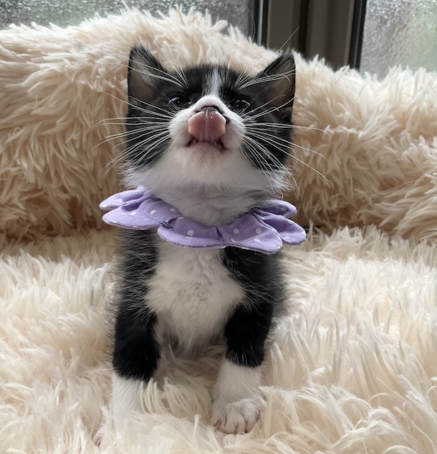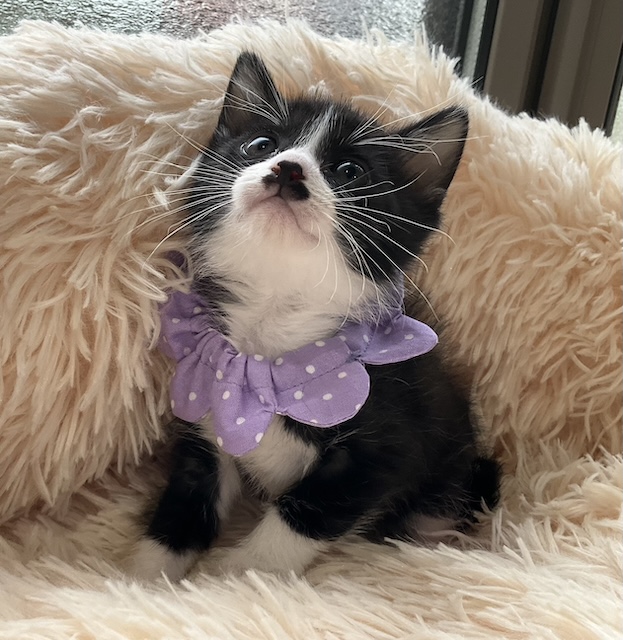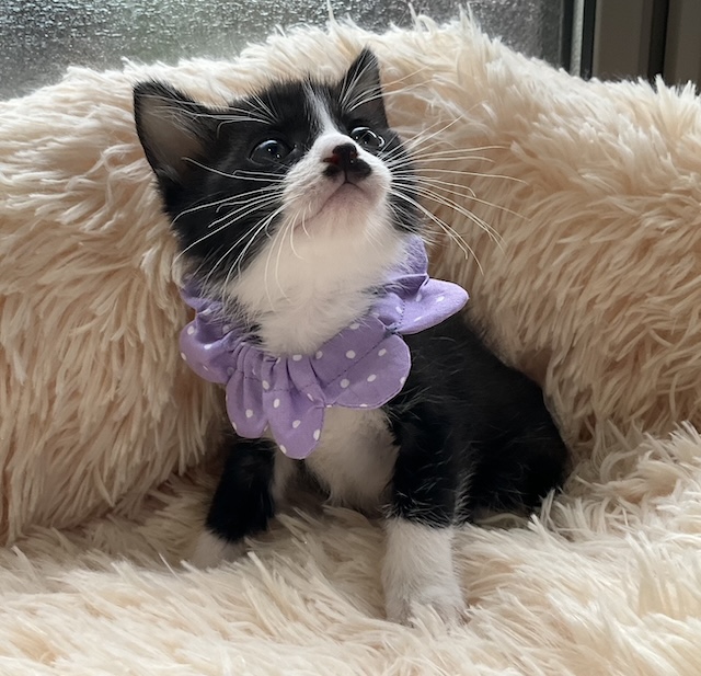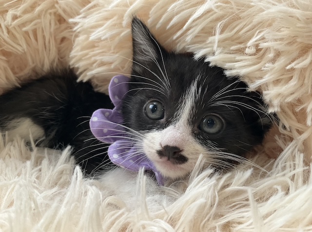 お鼻の黒ボッチがチャーミングな、黒白ハチワレボーイです。