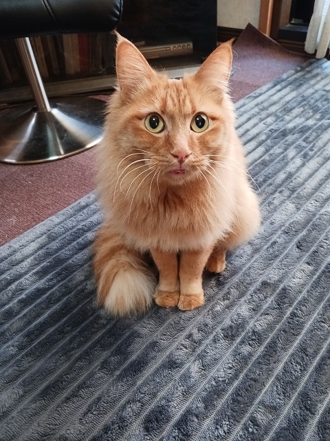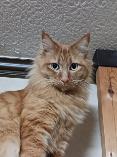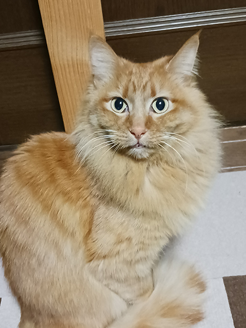 滑らかな長毛が自慢の茶トラの女の子です。慎重派であるため慣れるまでに時間がかかってしまいますが、触ってほしい時は自分から近づいて来てくれます。