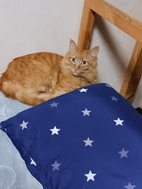 就寝時は枕元まで来て、一緒に寝てくれます。この時は触り放題です。思いっきり柔らかな長毛を堪能できます。