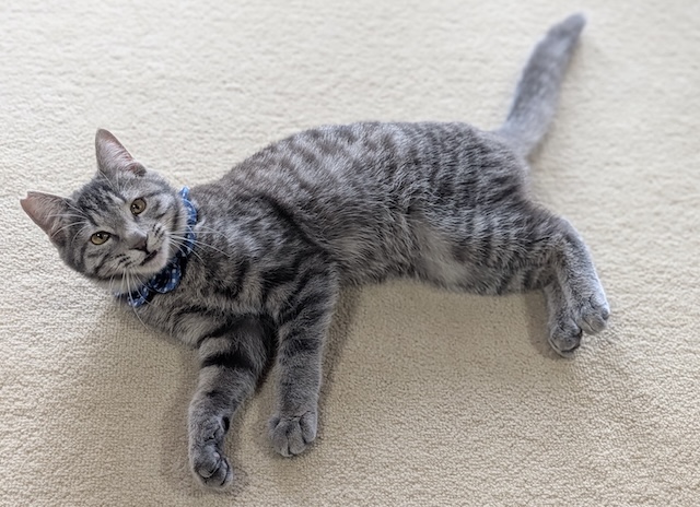 精悍な顔立ちのイケにゃんで、年齢より大人びて見えますが、中身はまだまだ子猫です。