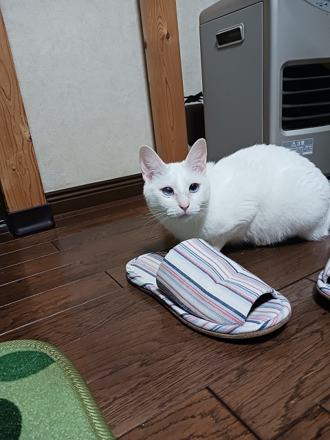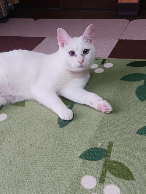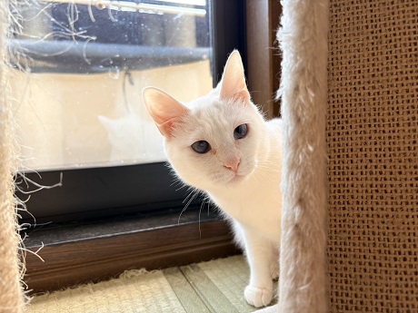 おもちゃで遊ぶのが大好きです。じゃらしを持ってくるとすぐに駆け寄ってきます。人慣れ修行中なので、威嚇をしてしまう時があります。