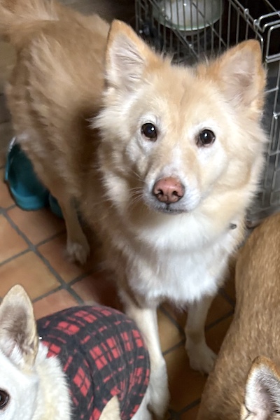 室内では楽しそうに同居犬と遊びますが、初対面の犬には警戒し吠え続ける面が見られますので相性をみる必要があります。