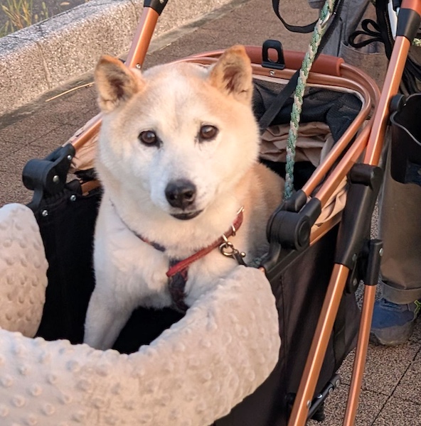 お散歩は大好きです。年齢の割に体力があり、朝夕各小一時間ほど歩いています。日によってむらはありますが、お散歩の時間は精神健康上、大切な時間のようです。