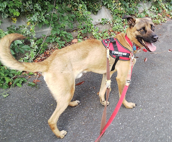 お散歩は、多少の引きはありますが比較的上手に歩きます。トカゲなどを見つけると突っ走るので注意が必要です。散歩中に会う犬には、興奮してたまに威嚇することがあります。