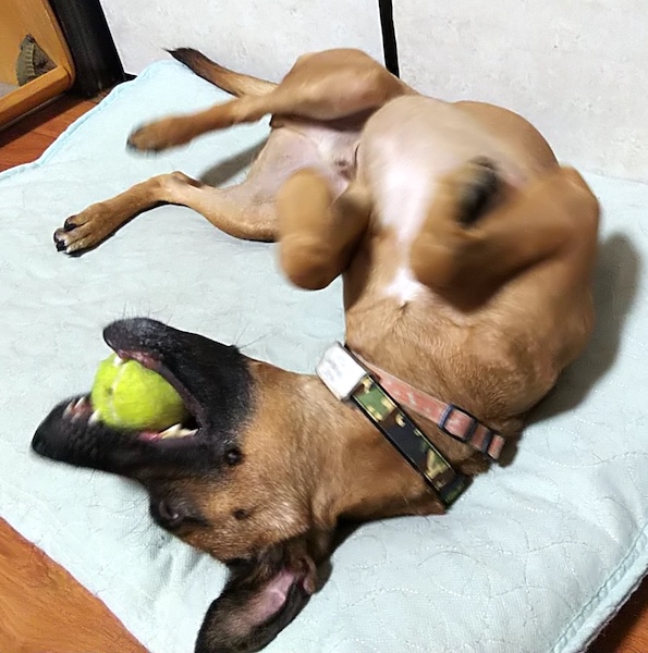 オモチャで遊んだり、気の合う犬と追いかけっこや戯れあって遊ぶのも大好きです。