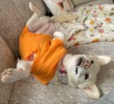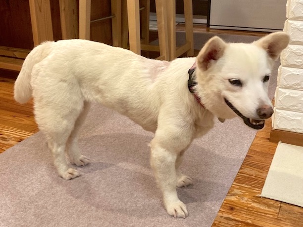 不妊手術時に乳腺腫瘍切除(良性)、鼠径ヘルニア整復、左肩背部腫瘤切除(良性)、上下臼歯3本を抜歯しました。首周りなど皮膚の状態が良くない部分がありますが、シャンプーなどにより改善しています。