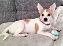 まだ幼犬ですので、お留守番の短いご家庭とのご縁を希望しています。成犬時の大きさは15キロ以上を予想しています。