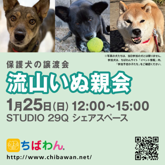 “STUDIO 29Q”にて第33回 流山いぬ親会を開催いたします。 飼い主探しをしている保護犬達に会いにきてみませんか。
