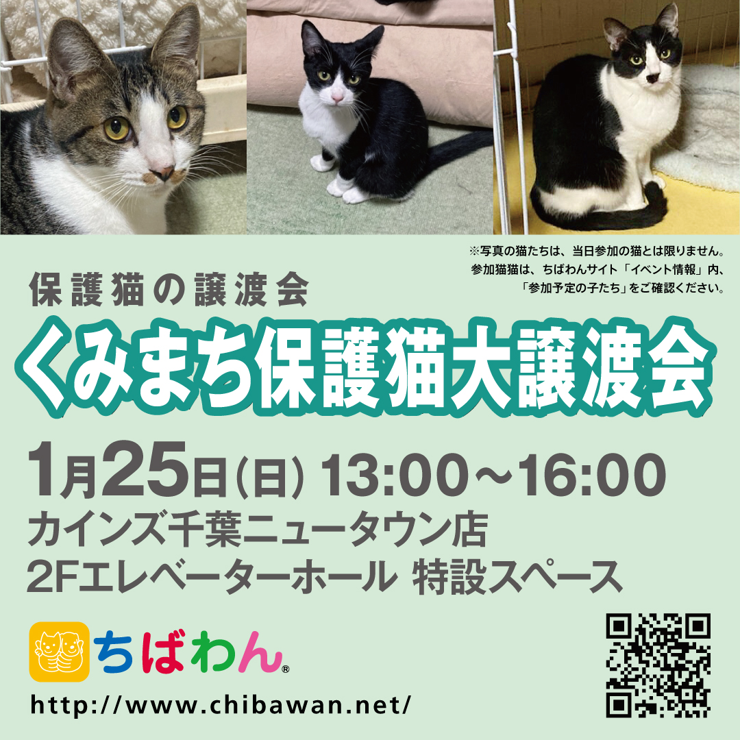 - 25(日) くみまち保護猫大譲渡会 (千葉県印西市)