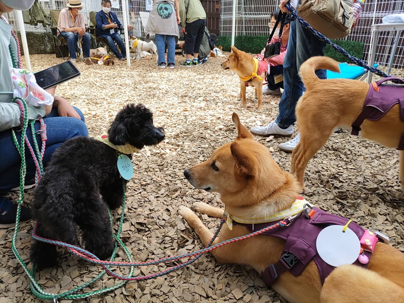屋根付きのドッグランでの開催となります。もちろん犬連れでの見学もOKです。ドッグランには足に優しいウッドチップが敷き詰められています。屋外ではありますが、今までと変わらず本当の家族を探している子たちが集まります。