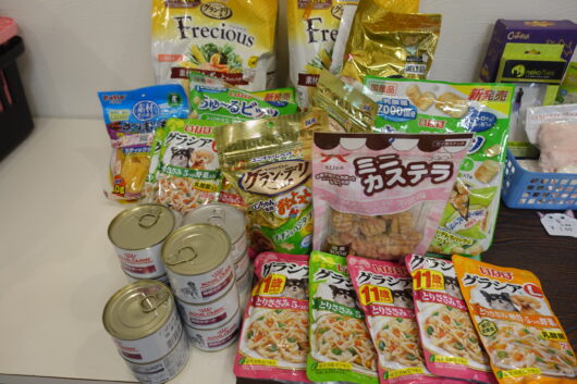 たくさんの支援物資をいただきました。いただいた寄附金や支援物資は、保護された犬猫たちのために大切に使わせていただきます。