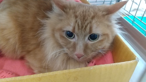 ふわっふわの毛並みが自慢の茶トラ・長毛のひまちゃんは 、少し恥ずかしがりやさんの女の子。譲渡会では、