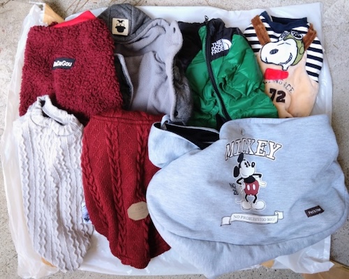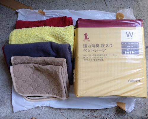 千葉県木更津市のW様より、犬服、防水マット、ペットシートなどをいただきました。
