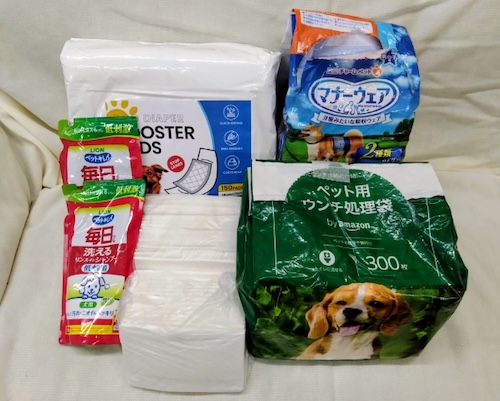 千葉県船橋市のM様より、ペットカート、犬用おやつ、マナーパッドなどをいただきました。