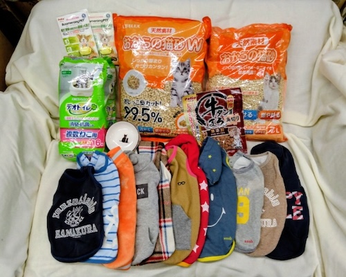 神奈川県鎌倉市のM様、K様より、犬服、猫砂、フリマ用品などをいただきました。