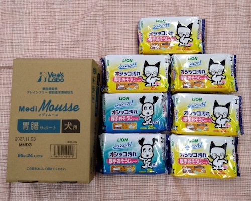 2026.3.12 ペット用ベッド、犬用ウエットフード、フリマ用品等を頂きました