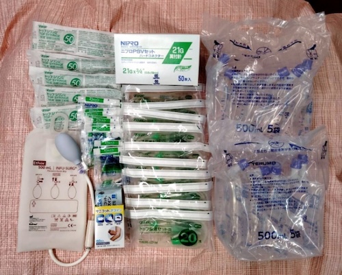 北海道沙流郡のW様より、補液用品、オムツなどをいただきました。